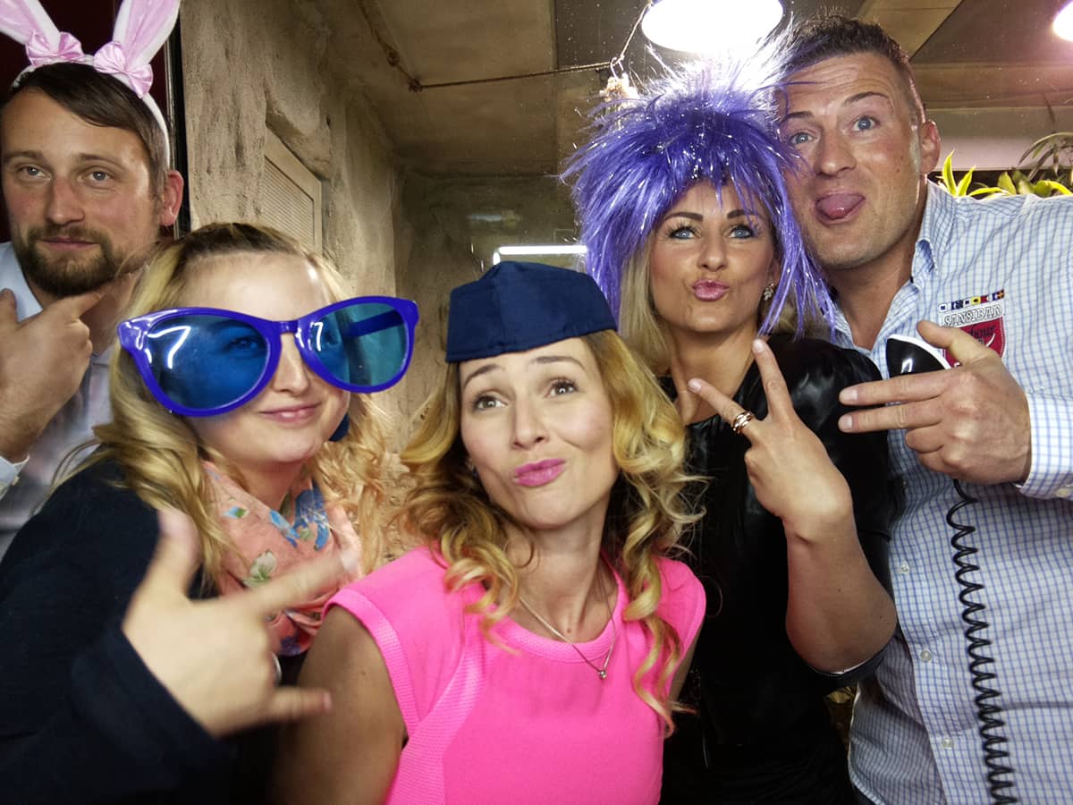 Fotodruck-Flat bedeutet, dass alle Fotodrucke im Preis inbegriffen sind! Du musst Dir also nicht vorher – oder gar auf der Feier selbst – überlegen, wann Du "Stopp" rufen willst. Die Gäste benötigen inklusive Verkleiden und Posieren 2-3 Minuten um die vier Fotos der Serie aufzunehmen. Während der anschließenden Druckzeit von ca. 1 Minute können dann aber schon die nächsten Gäste ihre Fotoserie aufnehmen.