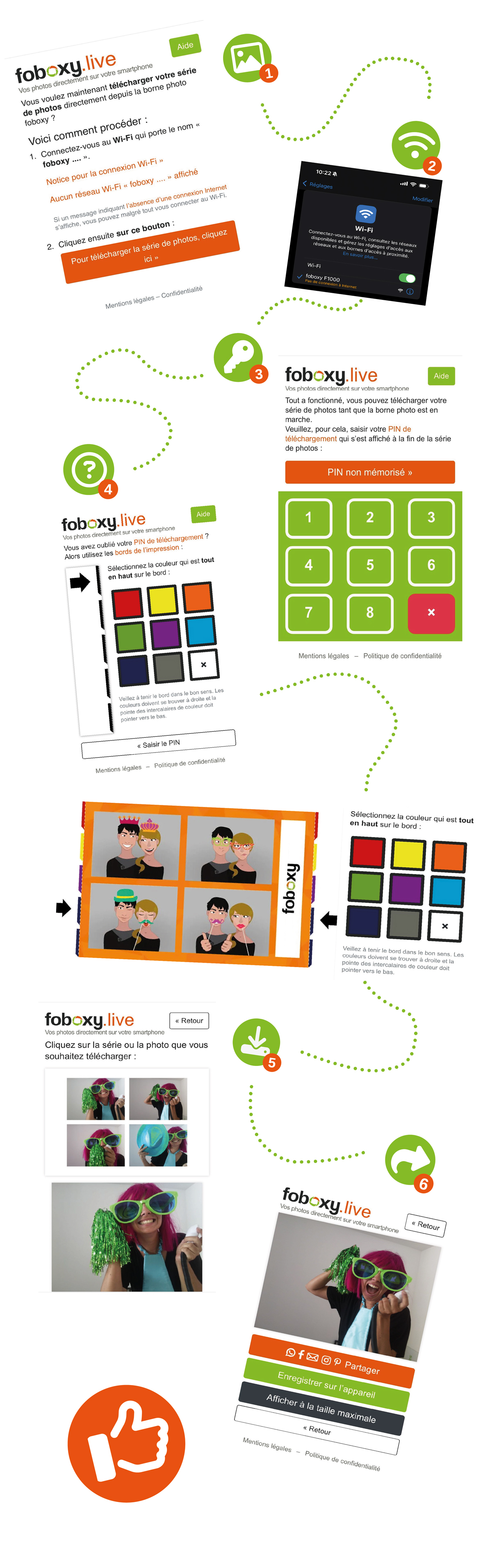foboxy.live vous permet de partager en ligne toutes les photos avec vos proches, pendant la fête. Qu’il s’agisse d’un mariage, d’un anniversaire ou d’une célébration , foboxy.live vous permet de partager avec tous vos invités, même ceux absents, les merveilleux moments passés. Vous pouvez charger aisément les photos directement de la borne photo à votre smartphone. Vous pouvez ensuite partager les photos de votre choix sur les réseaux sociaux, par e-mail ou via Messenger, etc. Bien entendu, les séries de photos sont aussi imprimées et enregistrées en plus sur la clé USB foboxy gratuite. Ainsi, les souvenirs de votre fête restent bien gravés et peuvent être ravivés à tout moment.
