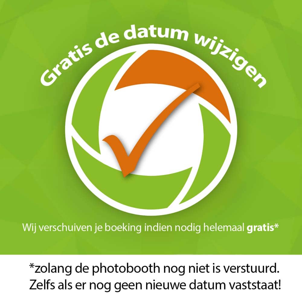 Natuurlijk geldt dat hoe dichter je bij de datum van je evenement komt, hoe groter de kans dat al onze photobooths al onderweg of in gebruik zijn voor andere evenementen. Als je evenement om welke reden dan ook wordt uitgesteld, biedt foboxy je een 100 % uitstelgarantie zolang de photobooth nog niet is verzonden.