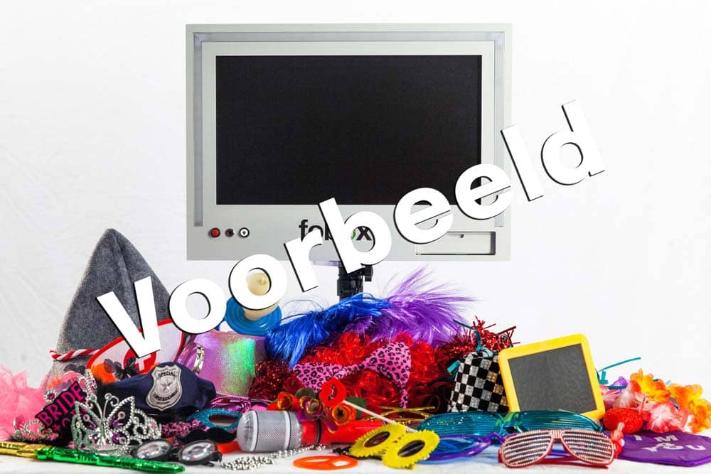 Wij adviseren ook om er een kleine tafel bij te zetten waarop je de verkleedaccessoires legt. Verder moet er een gewoon stopcontact in de buurt zijn. Wij leveren altijd een 3 meter lang verlengsnoer mee bij onze photobooths.