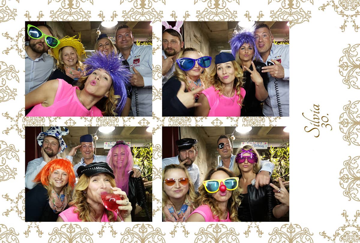 Een flatrate voor de afdrukken betekent dat alle afdrukken bij de prijs zijn inbegrepen! Je hoeft dus niet van tevoren of zelfs tijdens het feest zelf te bedenken wanneer je ""stop"" moet roepen. De gasten hebben inclusief aankleden en poseren 2-3 minuten nodig om vier foto's voor een serie te maken. Terwijl de serie wordt afgedrukt, wat ongeveer 1 minuut duurt, kunnen de volgende gasten al met hun fotoserie beginnen.